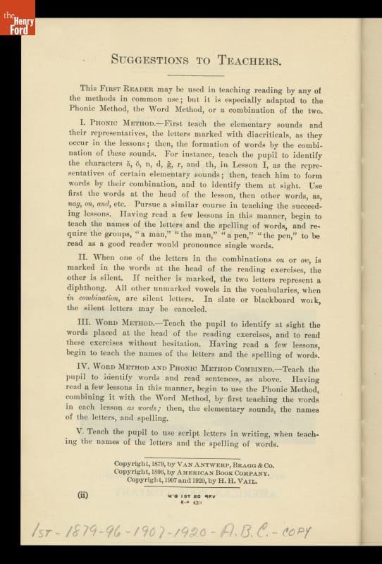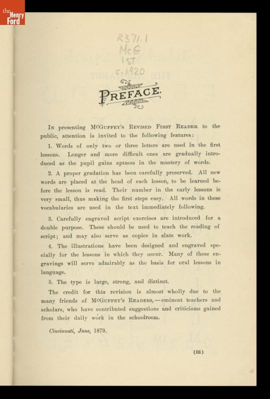 Written by William Holmes McGuffey. Revised edition copyright 1879 by Henry Hobart Vail. Published 1920 by American Book Company, New York, New York.