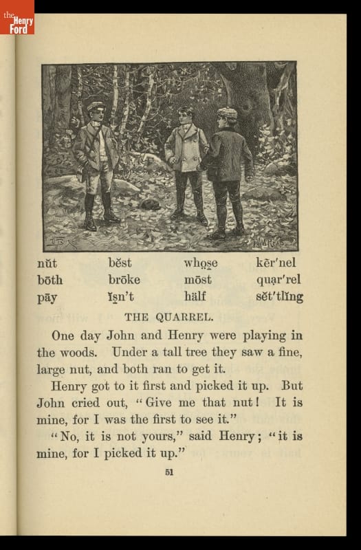 The McGuffey Readers were a textbook series used in schools throughout the United States during the nineteenth and early twentieth centuries. The Readers emphasized the fundamental skills of reading and writing but included stories on a wide range of subject matter. The books were also intended to develop proper character in children, and had an overtone of religion.
