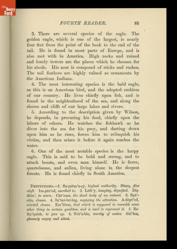 Textbook, "McGuffey's Fourth Eclectic Reader," Revised Edition 1879, Published 1920