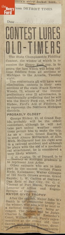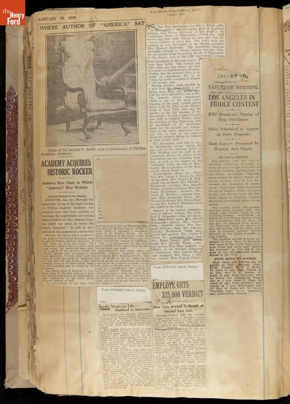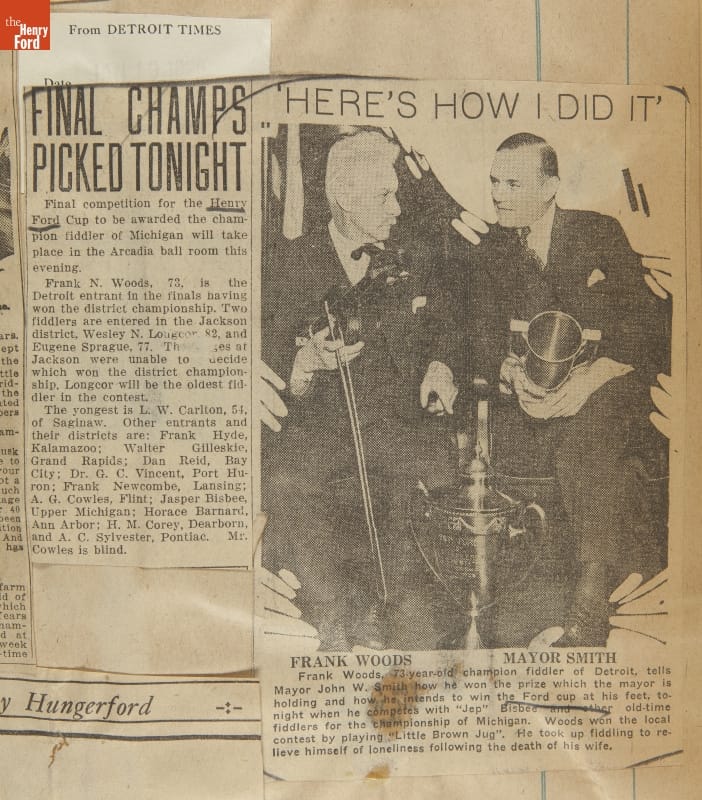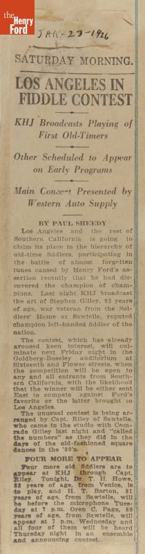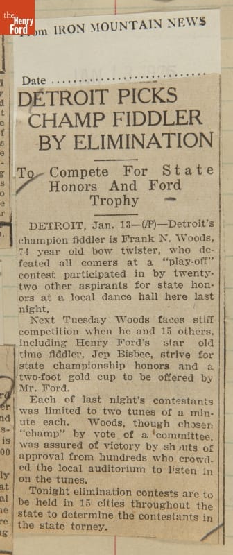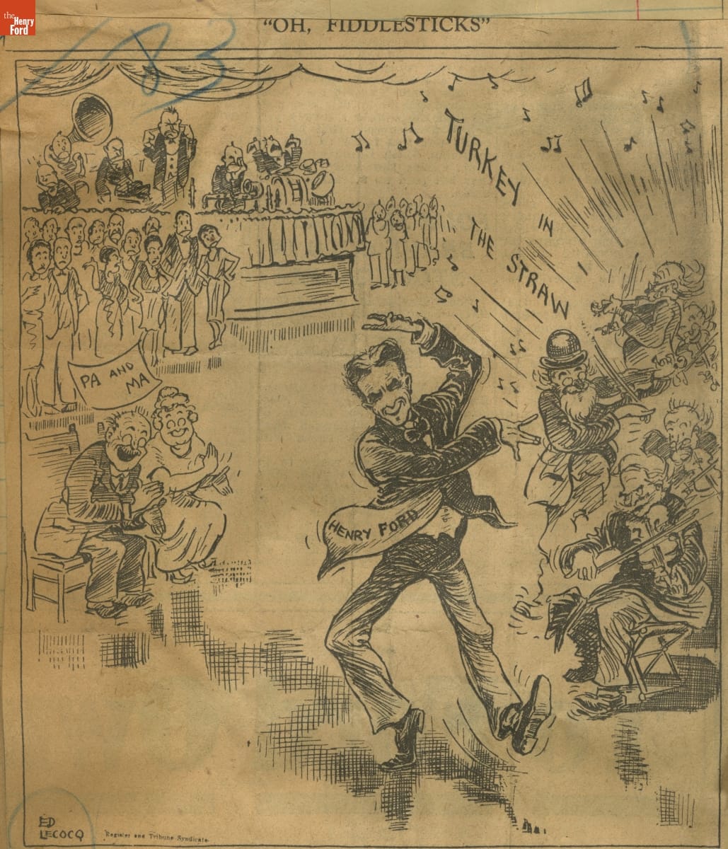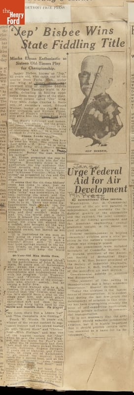 The press took note of Henry Ford's classical violin acquisitions during the mid-1920s. This Albany, New York, newspaper article, published in January 1926, exaggerated the price Ford paid for his centuries-old violins made by Italian masters like Antonio Stradivari. (The figure was probably closer to $100,000.) But the article clearly linked Ford's violin purchases to his interest in "old tunes and fiddlers."