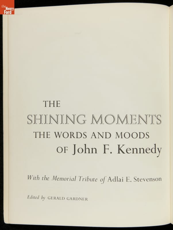 Stunned and disillusioned Americans eagerly embraced commemorative books and magazines following the tragic death of President Kennedy on November 22, 1963. This publication -- "The Shining Moments: The Words and Moods of John F. Kennedy" -- included a memorial tribute by Adlai Stevenson, who had been appointed by President Kennedy to be U. S. Ambassador to the United Nations.