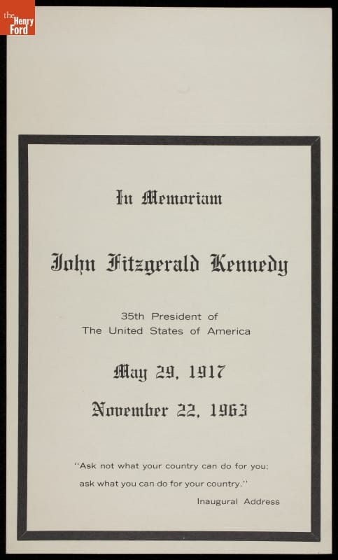 Memorial Card for John Fitzgerald Kennedy, 1963
