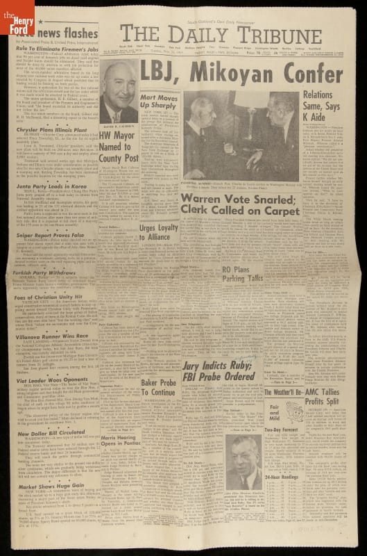Newspaper, The Daily Tribune (Royal Oak, Michigan) for November 26, 1963, "LBJ, Mikoyan Confer"