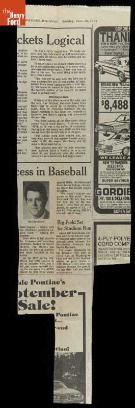 Bobby Unser earned a place among automobile racing's greats, having successfully competed in nearly every form of the sport. The racing career of this three-time Indianapolis 500 winner and 13-time Pikes Peak International Hill Climb winner spanned more than 30 years. This clipping -- part of a large archival donation from Bobby and Lisa Unser to The Henry Ford -- helps to document his career.