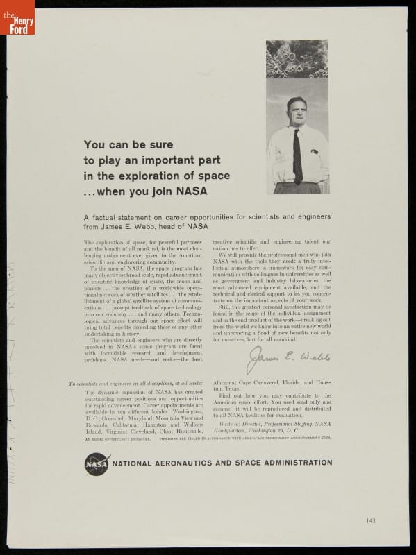 Recruiting Advertisement for NASA, "You Can be Sure to Play an Important Part in the Exploration of Space," March 1962
