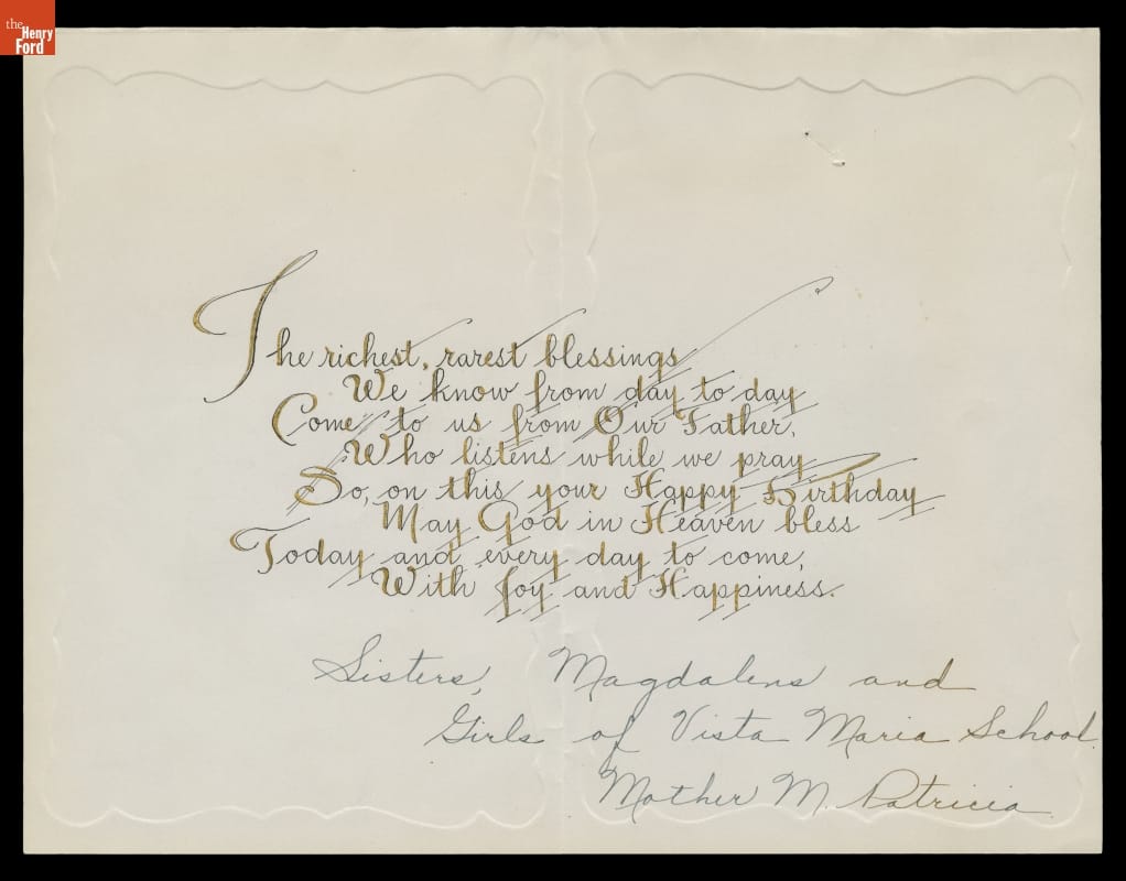 Birthday card from Vista Maria School to Henry Ford, 1943-1946