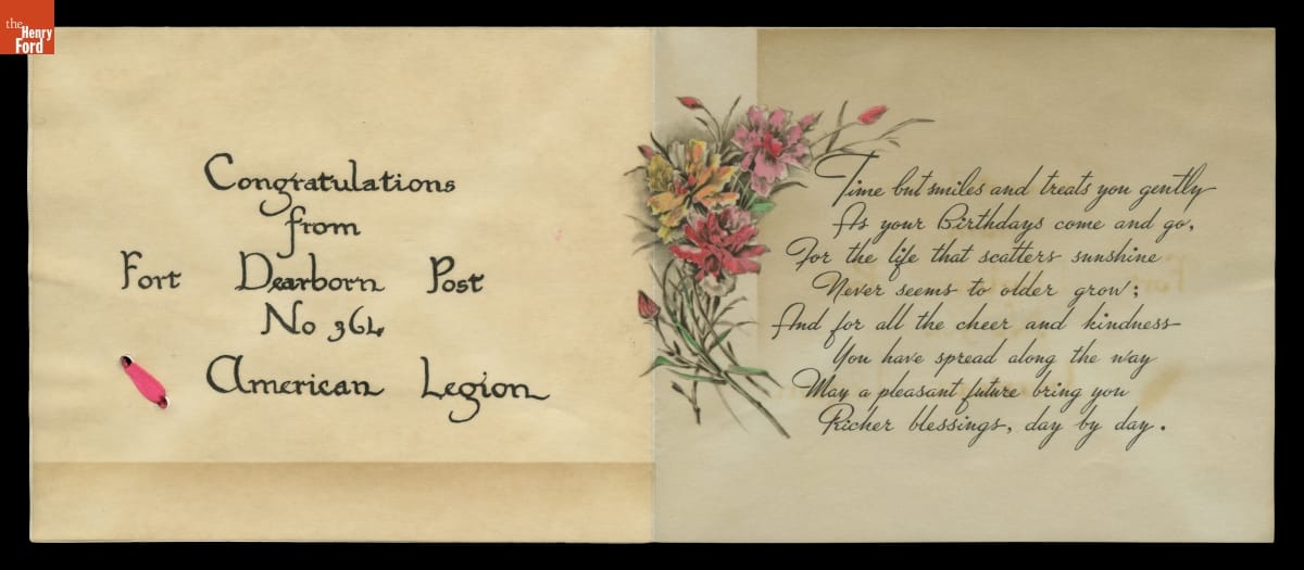 Birthday Card from American Legion Fort Dearborn Post No. 364 to Henry Ford, 1937