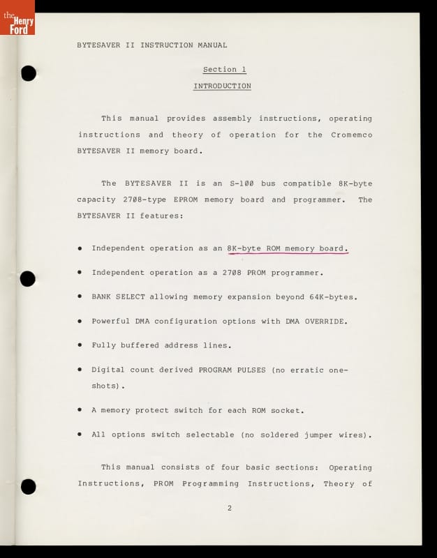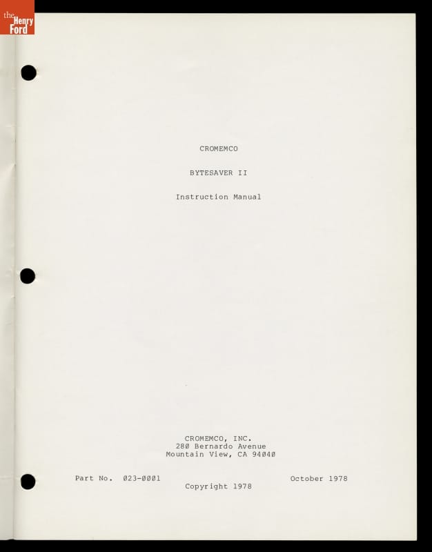 Manual, "CROMEMCO Bytesaver II Instruction Manual," 1978