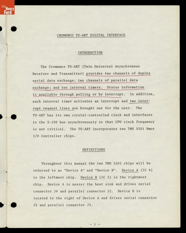 Manual, "CROMEMCO Tu-Art Digital Interface," 1978