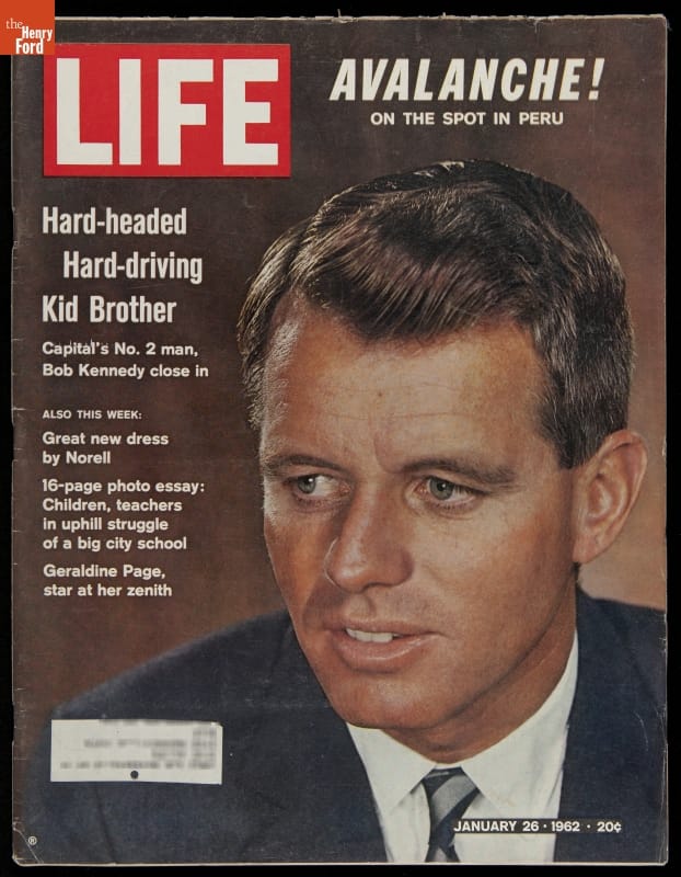 Kennedy family members often appeared on the covers of Life magazines during the early 1960s, attracting attention and increasing magazine sales. This Life cover story features President Kennedy's "kid brother" Robert. As the President's Attorney General and most trusted adviser, "Bobby" Kennedy was called in this article "a political phenomenon such as never quite existed before in the United States."