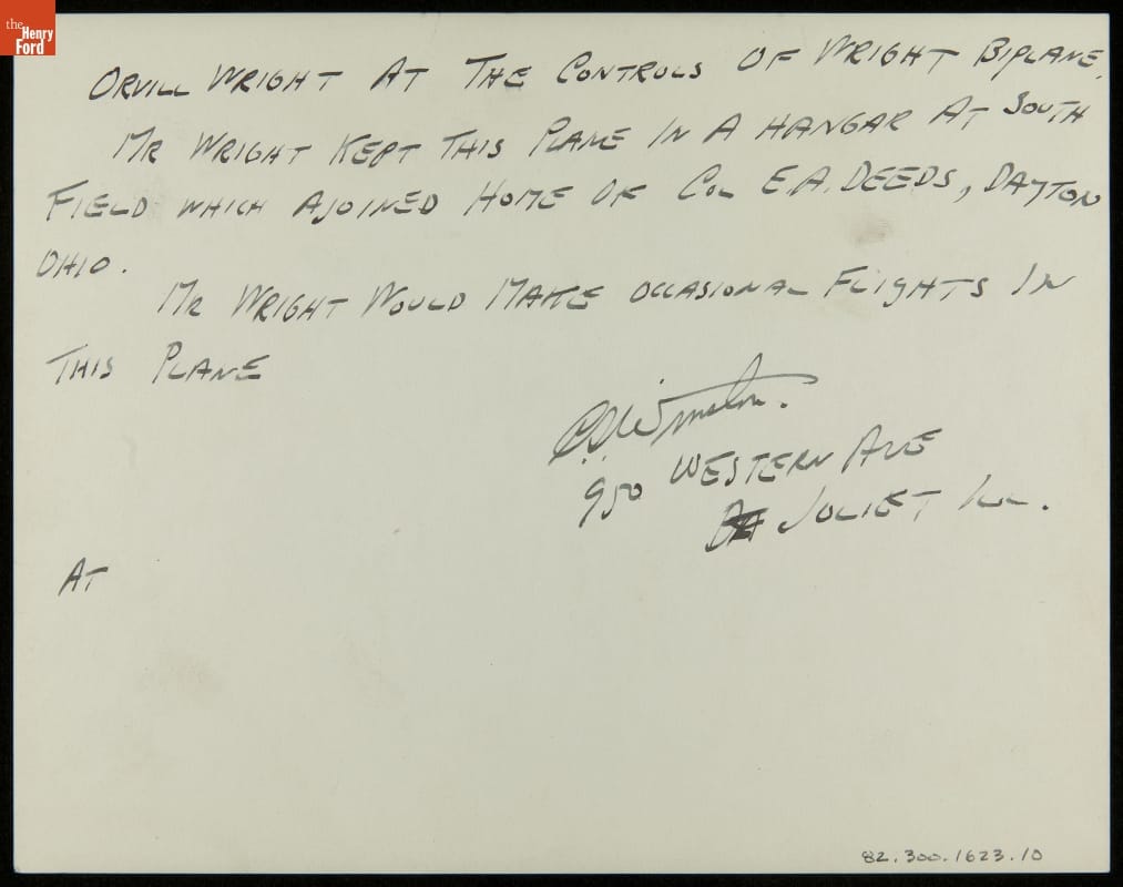 Orville Wright at Controls of Wright Biplane, Dayton-Wright Company, South Field, Dayton, Ohio, 1918