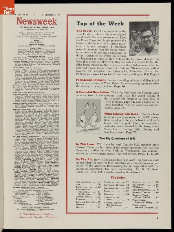 Newsweek Magazine for December 25, 1961, "Peace Corps in Action: Ira Gwin"