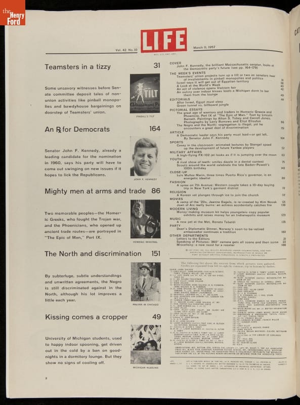Even before he was President, John F. Kennedy's youthful image could attract attention and sell magazines. This Life magazine from March 11, 1957 features Senator Kennedy's article, "Where Democrats Should Go From Here." His authorship and the visibility provided by this popular magazine helped make Kennedy a contender for the Democratic Party's Presidential nomination for the upcoming 1960 national election.