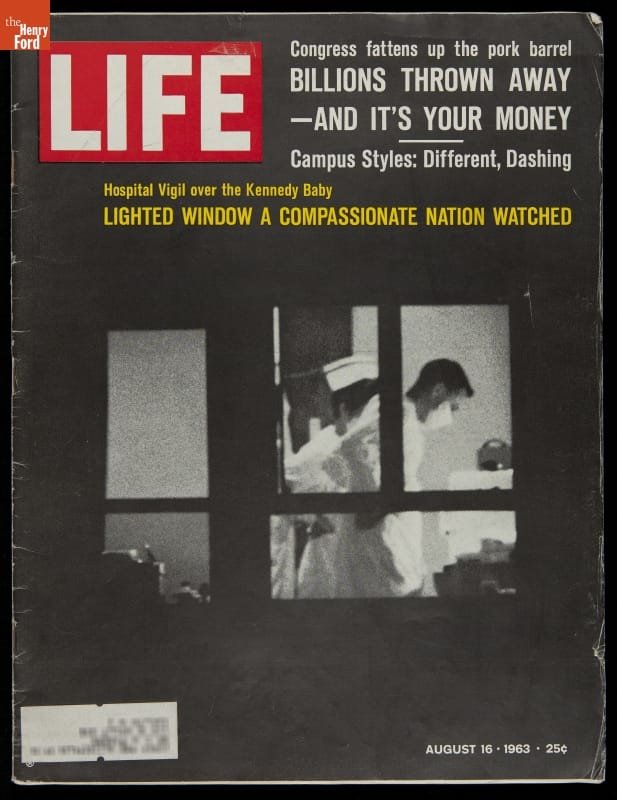 Americans were enchanted by the young John F. Kennedy family and they wanted to know more, always more. This magazine cover reflects the concern of the nation for the Kennedys' son, Patrick Bouvier Kennedy, who was born August 7, 1963, and only lived for two days.