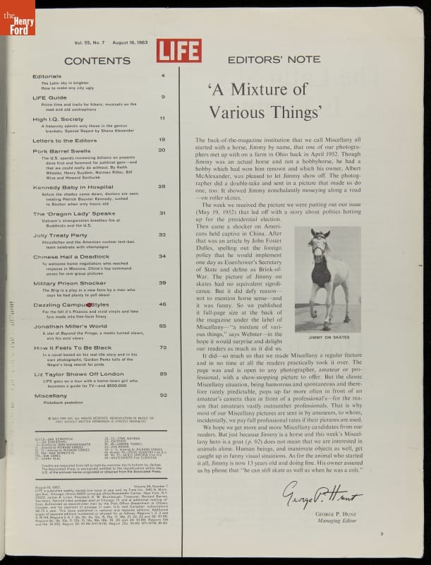 Life Magazine for August 16, 1963, "Hospital Vigil over the Kennedy Baby"
