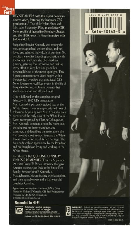 Videotape Recording, "Jacqueline Kennedy Onassis Remembered: A Profile of Her Life," 1994