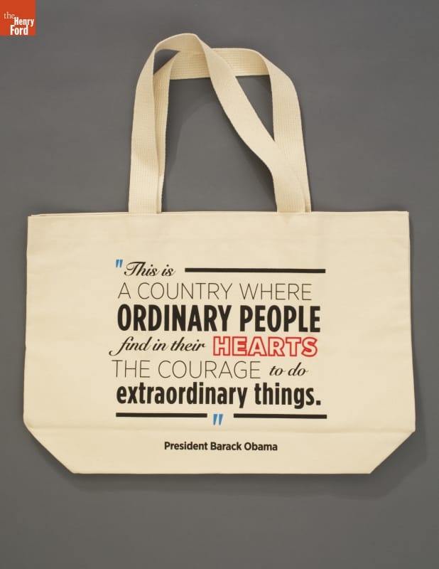 President Barack Obama's second inauguration took place in January 2013. Nearly one million people attended the public ceremony on Monday, January 21st. Many bought souvenirs and sported commemorative buttons to remember the occasion.