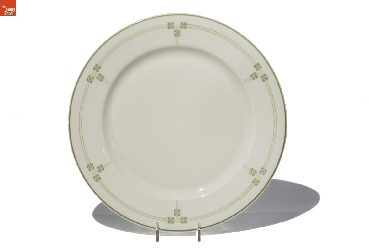 Henry Ford, Thomas Edison, Harvey Firestone and naturalist John Burroughs embarked on a series of camping trips between 1916 and 1924. These self-proclaimed Vagabonds loved to explore nature and the pre-industrial landscape, but they also camped in style. This group of well-to-do adventurers brought along service staff and all needed amenities including a set of durable, Art and Crafts-patterned china.