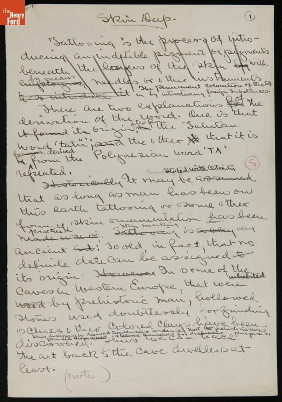 THF233466 / Manuscript for the Book "Skin Deep," circa 1926 / Chapter Illustration Drawings Sheet title page