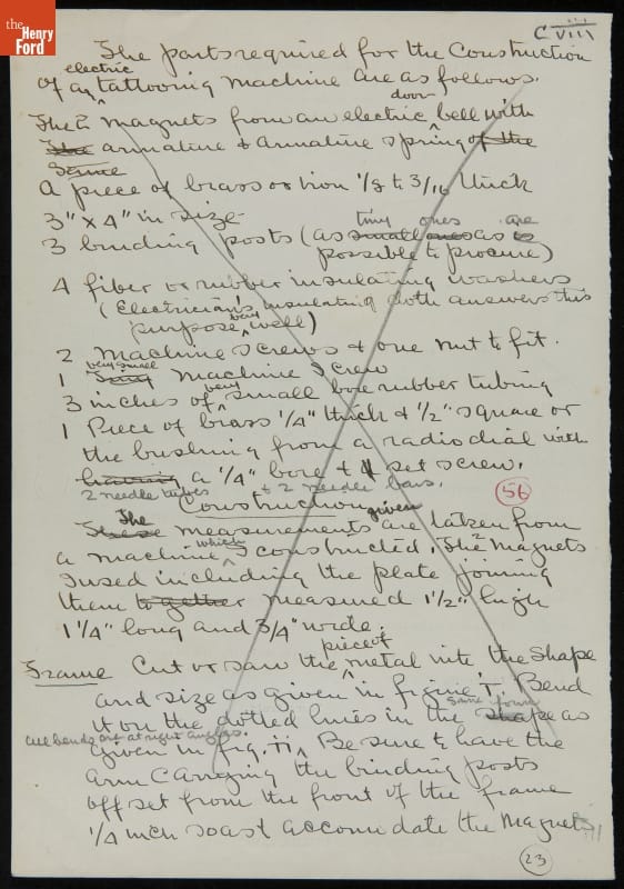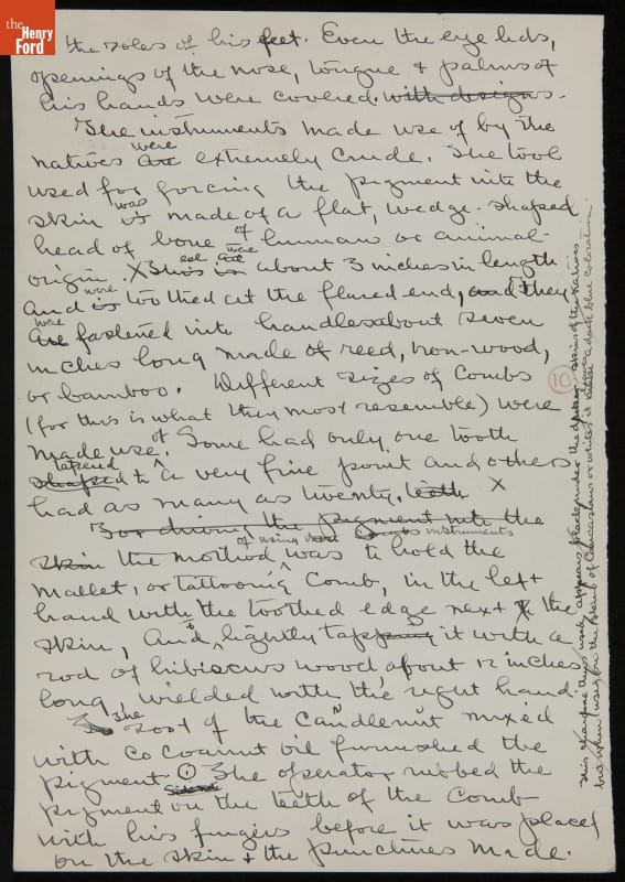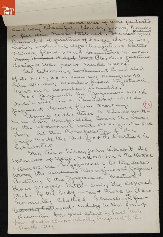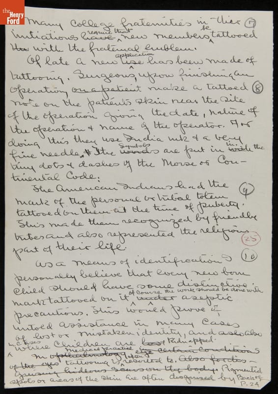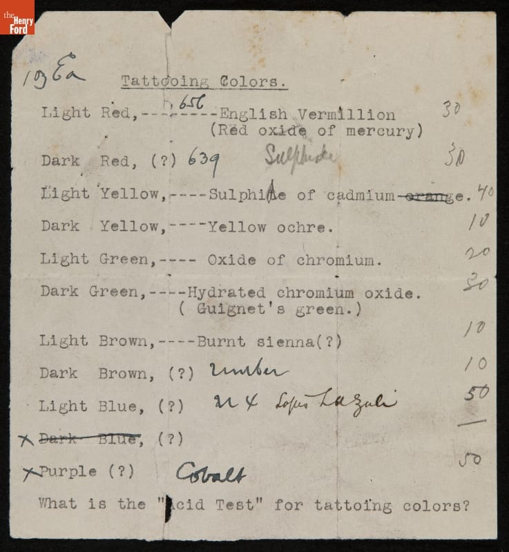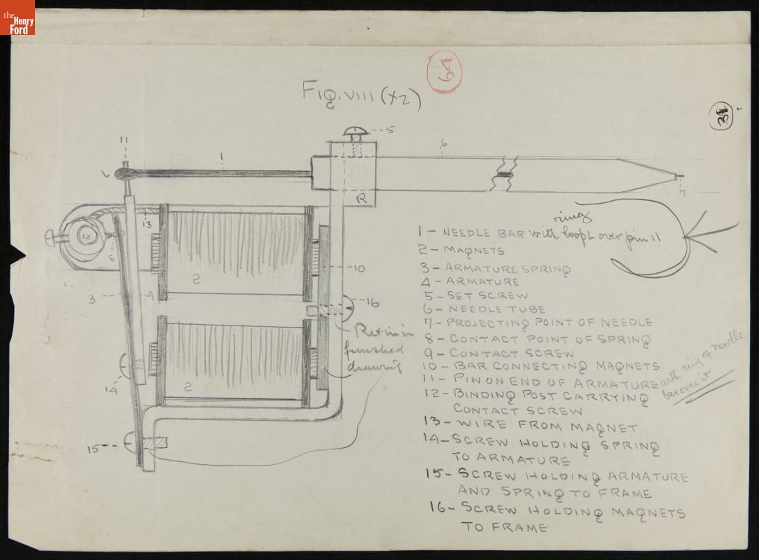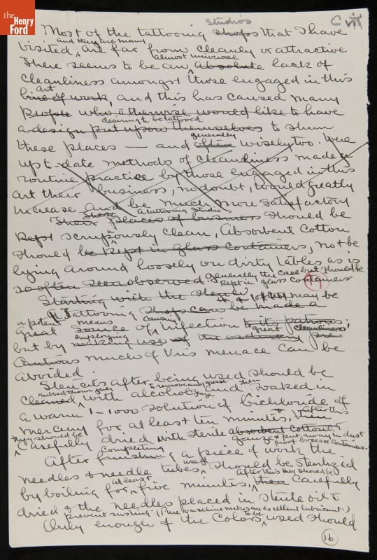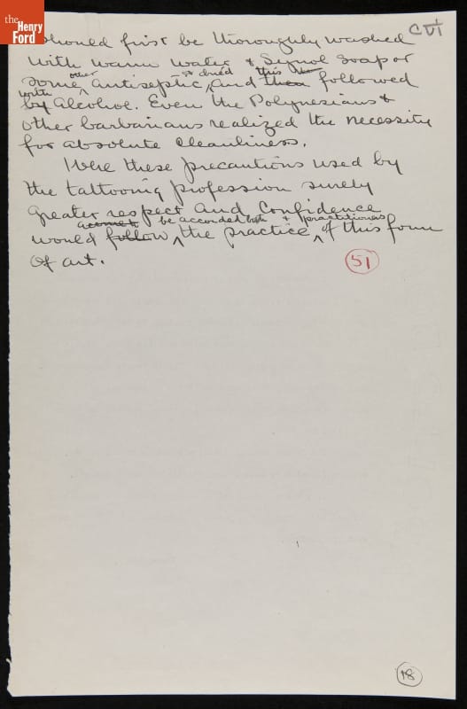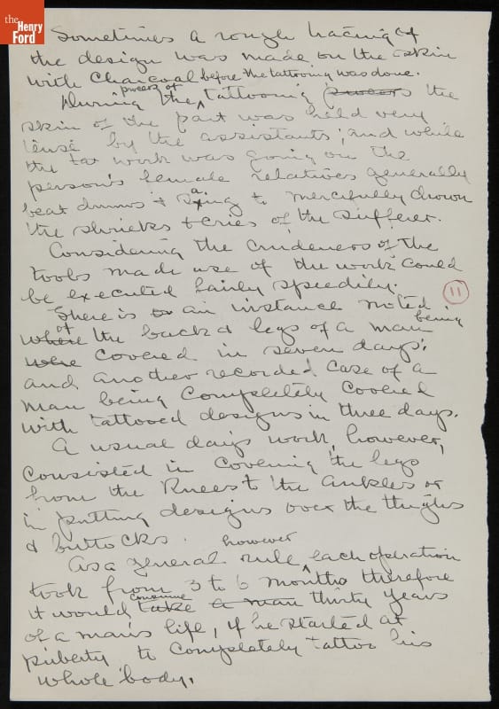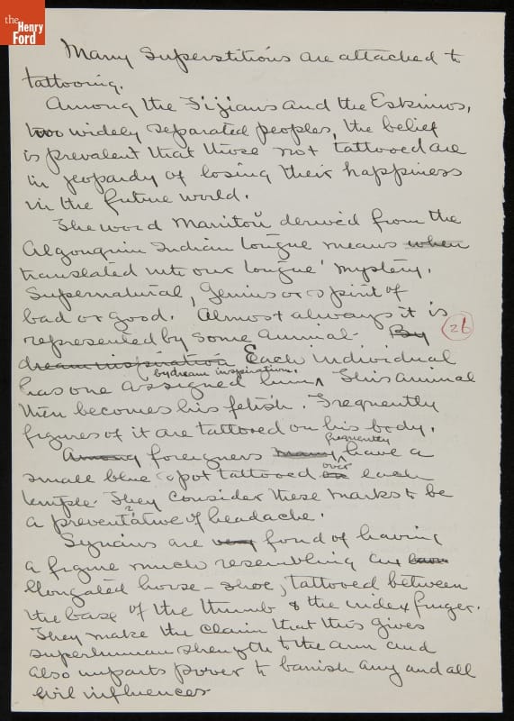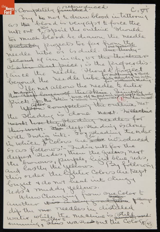 Tattoos communicate stories. Their content ranges from deeply personal and traditional--to regrettable and frivolous. In the early 1900s, "Professor" Waters apprenticed as a tattoo artist in carnivals and New York's Bowery District. He ran a successful supply shop in Detroit (1918-1939), patenting the standard "two-coil" tattoo machine in 1929. Designs from his flash sheets continue to inspire tattooists today.