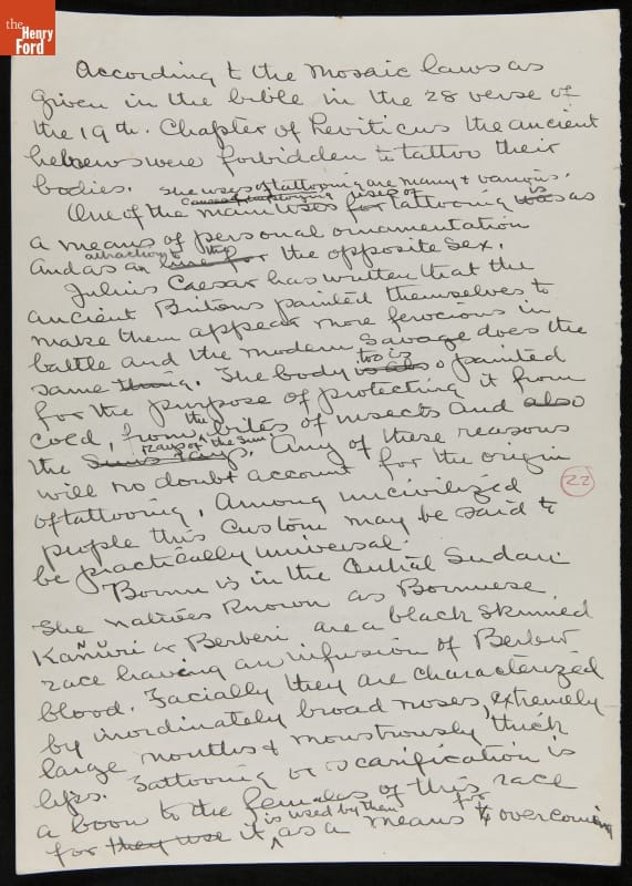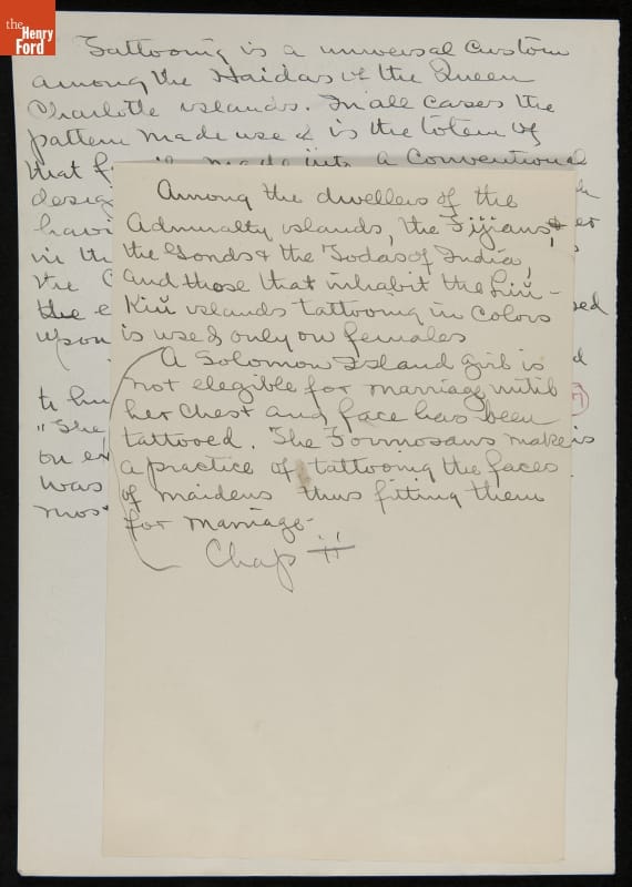 THF233467 / Manuscript for the Book "Skin Deep," circa 1926 / Chapter Illustration Drawings Sheet title page back