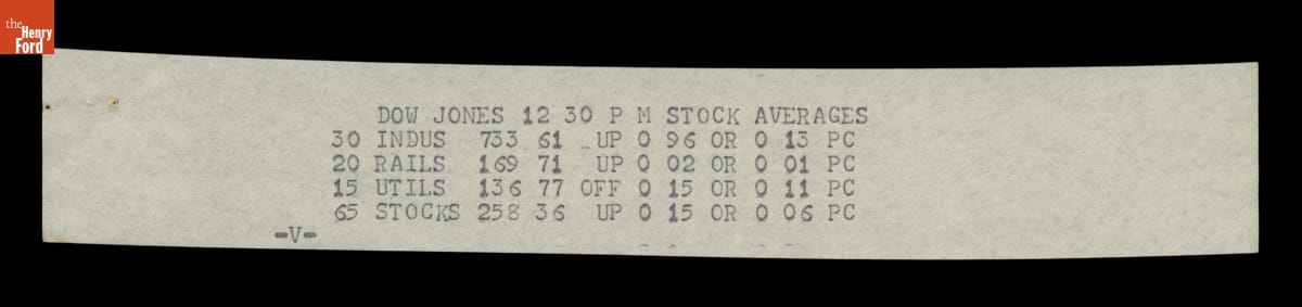 Teletype Message with Dow Jones Stock Averages, November 22, 1963