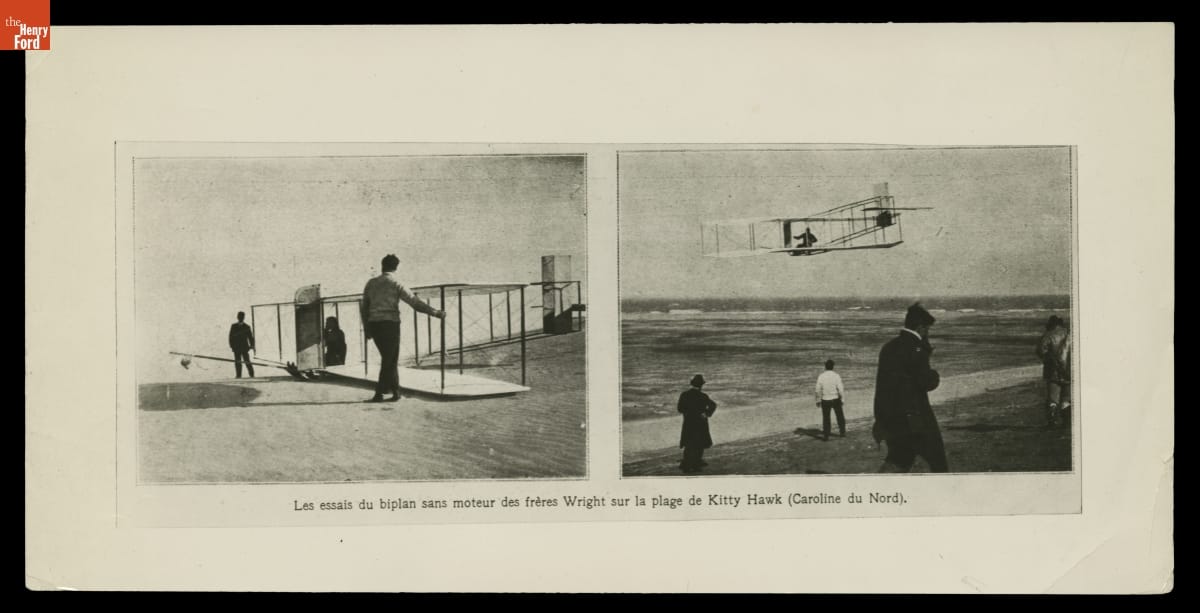Les essais du biplan sans moteur des freres Wright sur la plage de Kitty Hawk (Caroline de Nord)