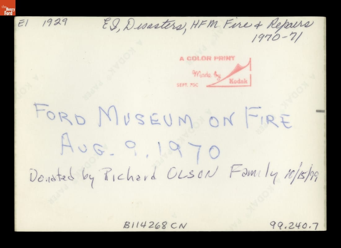 Fire at Henry Ford Museum, August 9, 1970