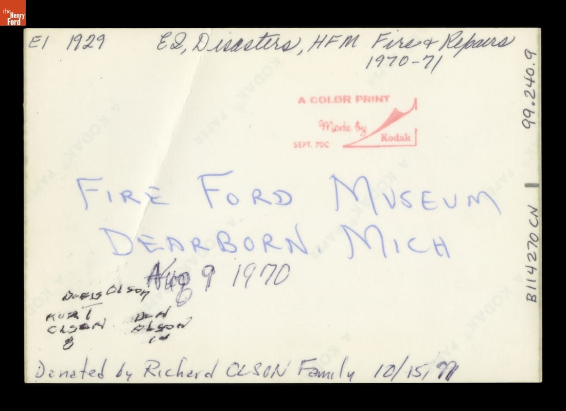 Fire at Henry Ford Museum, August 9, 1970