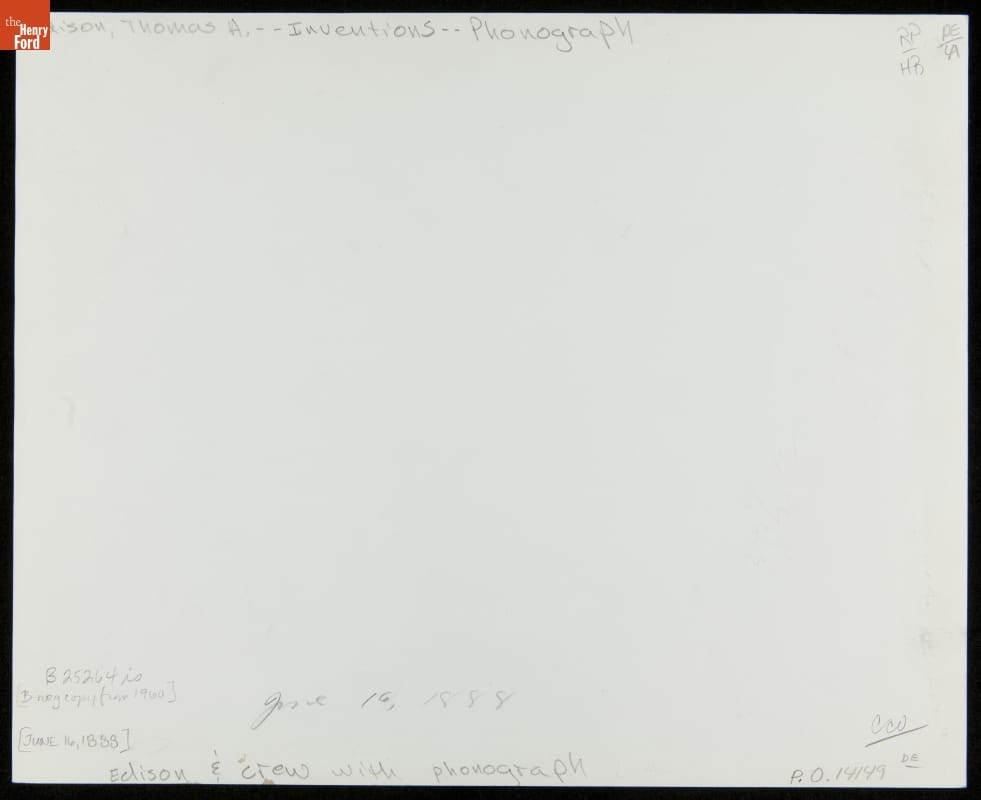 Thomas Edison and Assistants with Phonograph outside the West Orange Laboratory, June 16, 1888