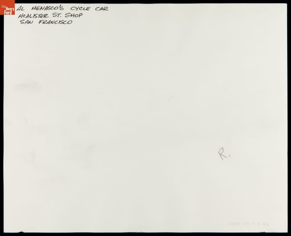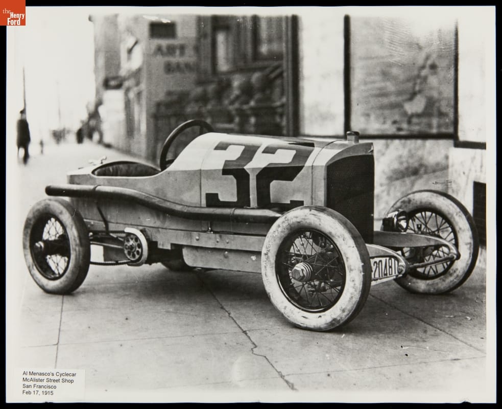 Al Menasco's Cycle Car, McAlister Street Shop, San Francisco, California, 1915