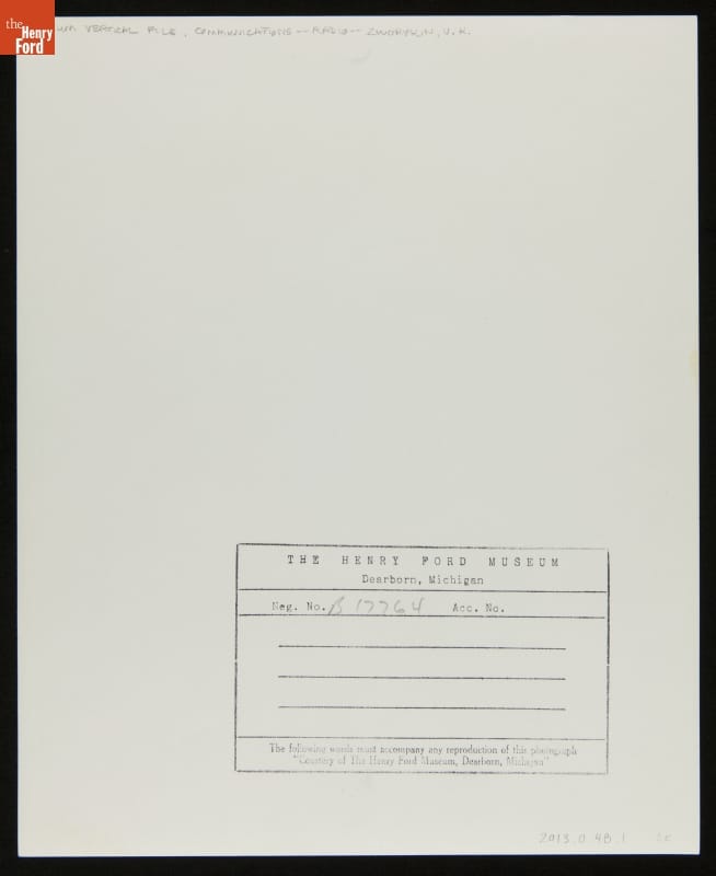 Stamp from THE HENRY FORD MUSEUM with B Neg. No. on verso.