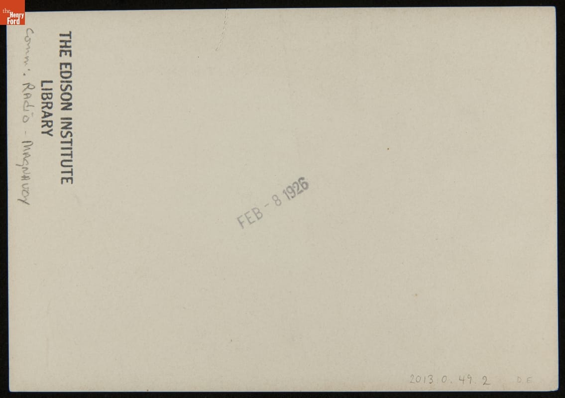Stamp on verso: THE EDISON INSTITUTE LIBRARY | FEB - 8 1926