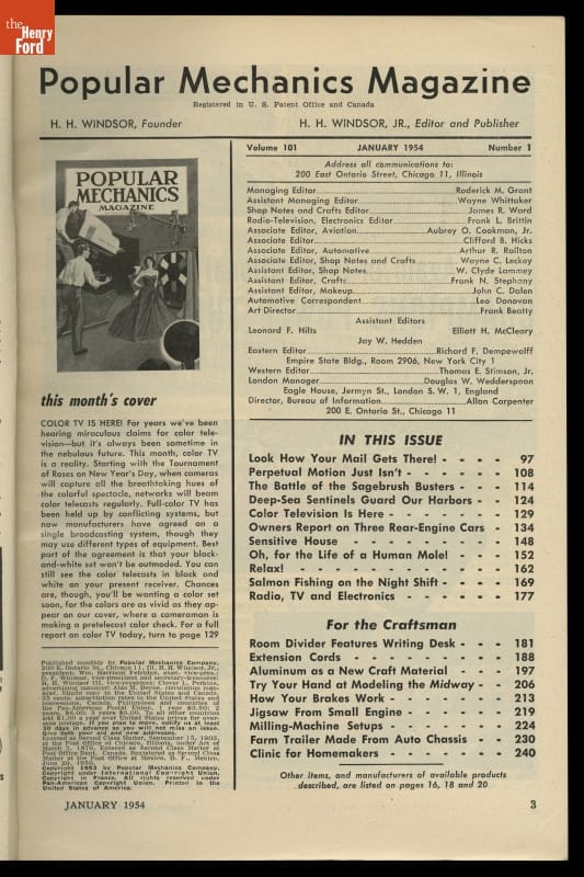 Popular Mechanics Magazine for January 1954, "Color TV is Here"