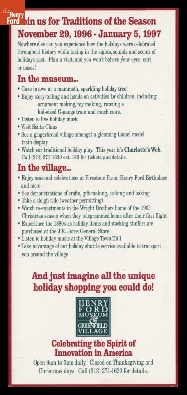Informational Leaflet, Henry Ford Museum & Greenfield Village, "Climb aboard for a Unique Holiday Event!," 1996
