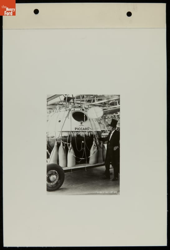 In October 1934, the Piccard stratospheric flight ascended 10.9 miles from Ford Airport field. The magnesium gondola depicted here was carried by a hydrogen balloon. Charles Roscoe Miles, a distant relative of Abraham Lincoln, marketed his resemblance via a lecture circuit in the 1930s, where he met Henry Ford and was invited to visit the Museum and Greenfield Village.