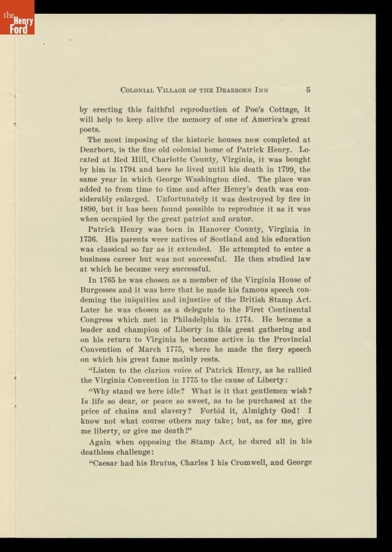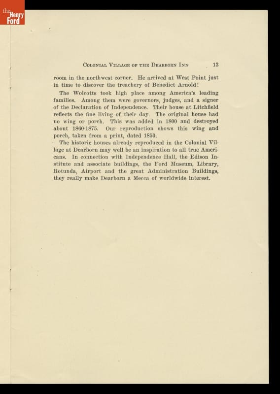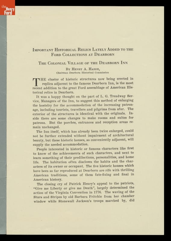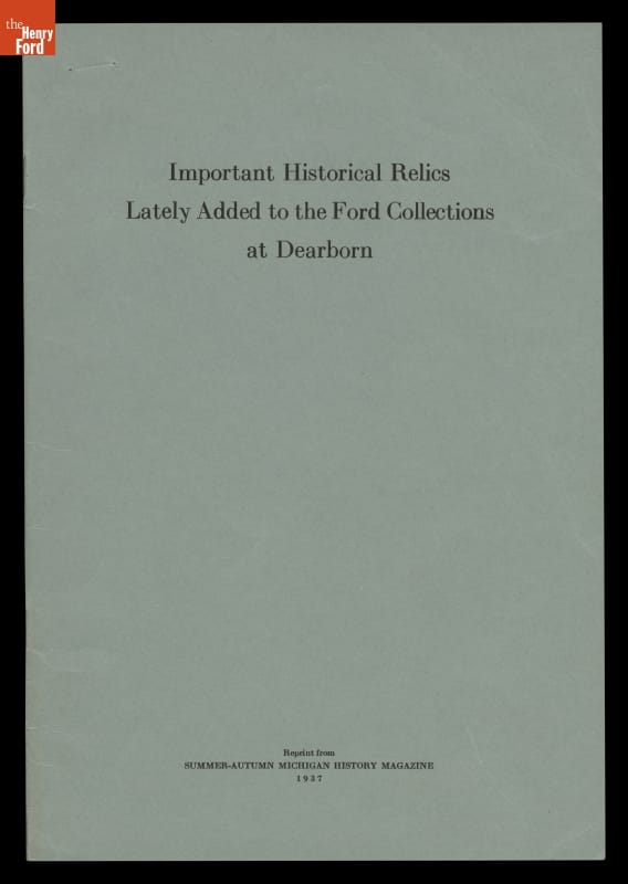 Booklet, "Important Historical Relics Lately Added to the Ford Collections at Dearborn," 1937