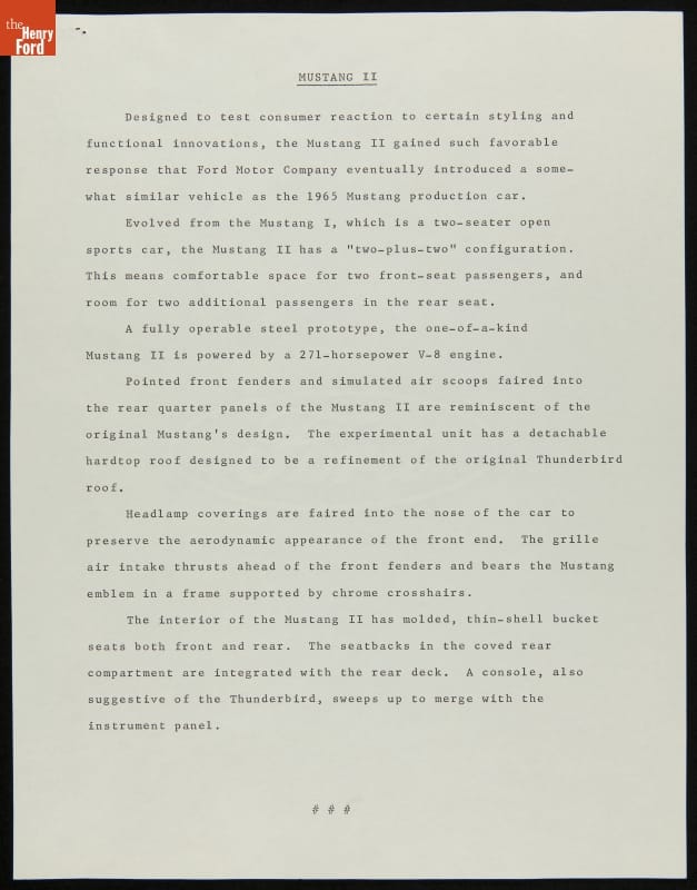 Ford Public Relations Statement Concerning the 1963 Mustang II Concept Car