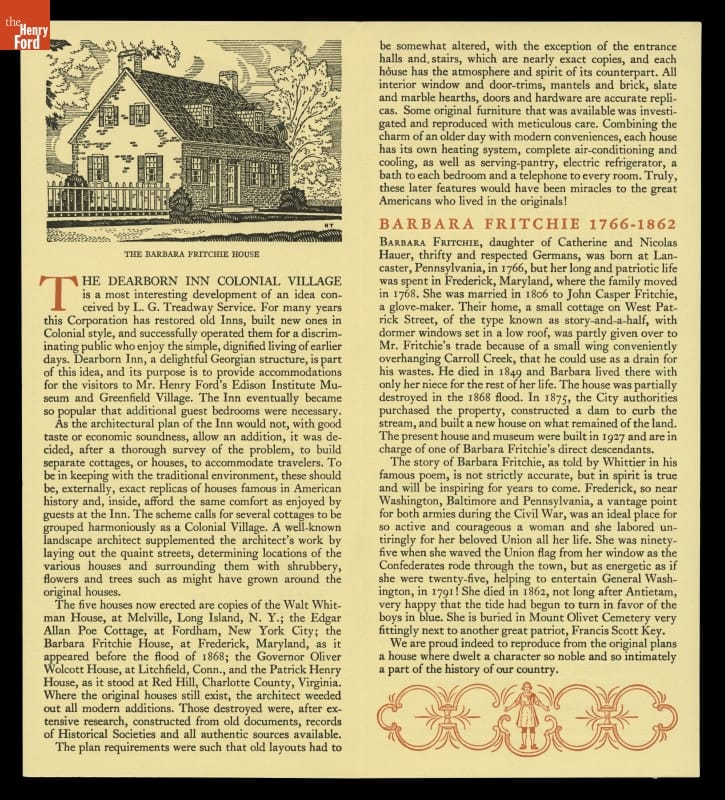 Brochure, "Some Facts regarding the Barbara Fritchie House," Dearborn Inn Colonial Village, 1937