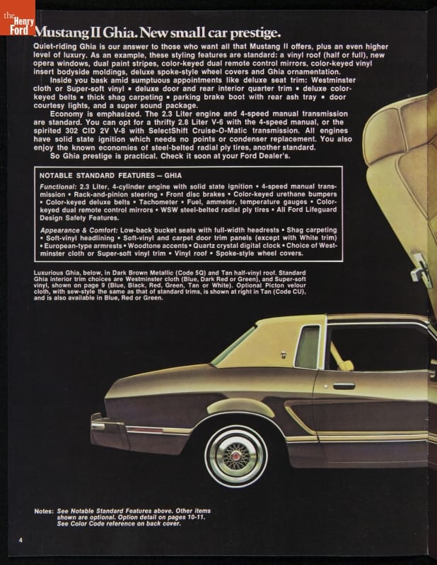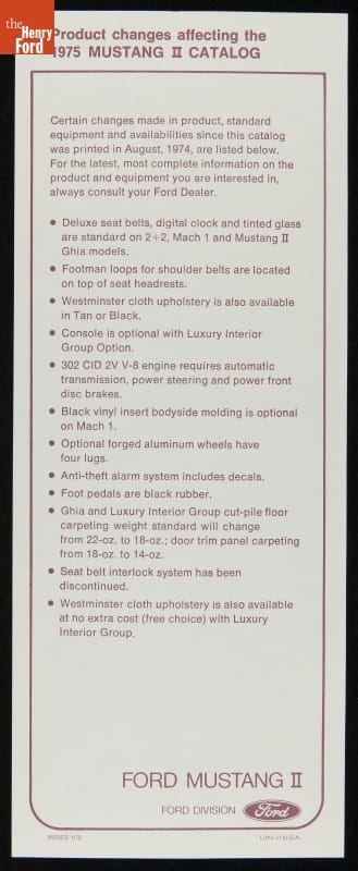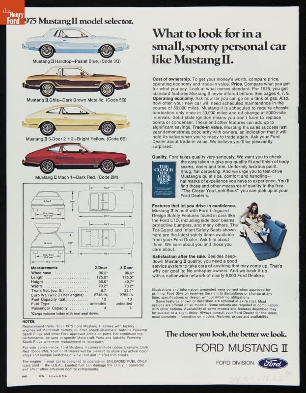 Sales Brochure, "1975 Mustang II, Our Small Sporty Personal Car"
