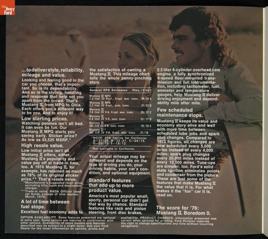 Sales Brochure for 1976 Ford Mustang, "Mustang II... a Sporty, Personal Car You Can Depend On"