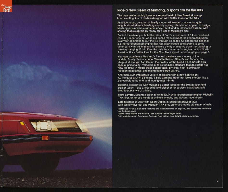 Sales Brochure, "1980 Ford Mustang. A Sports Car for the 1980's"