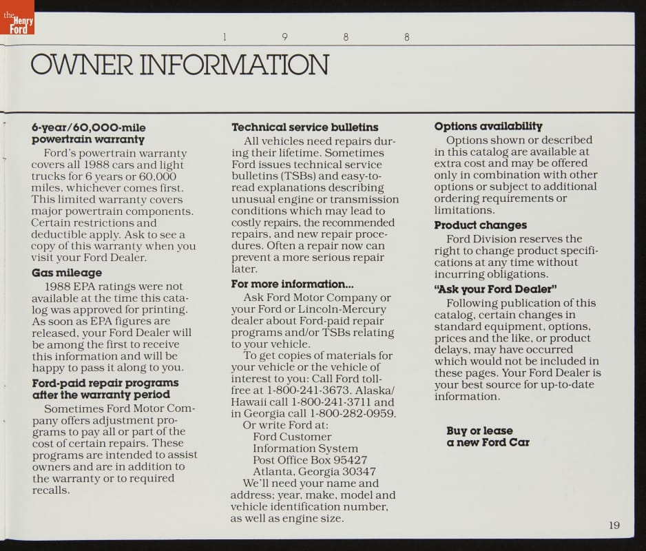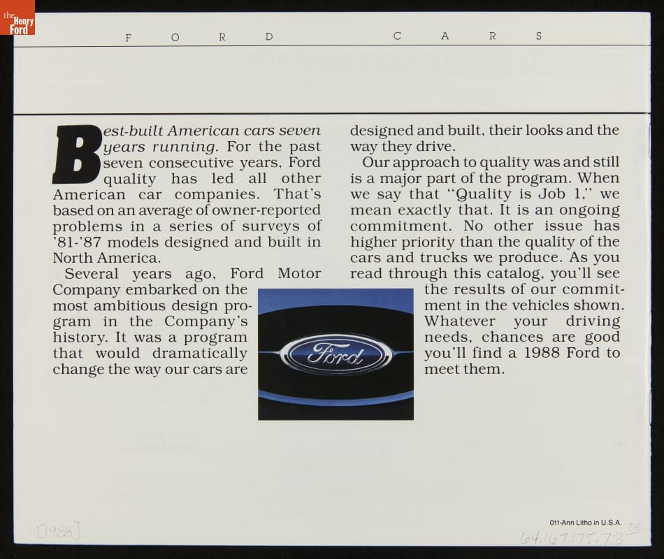 Sales Brochure, "1988 Ford Cars"