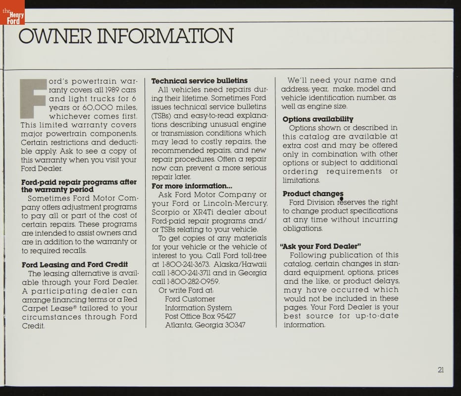 Sales Brochure, "1989 Ford Cars"