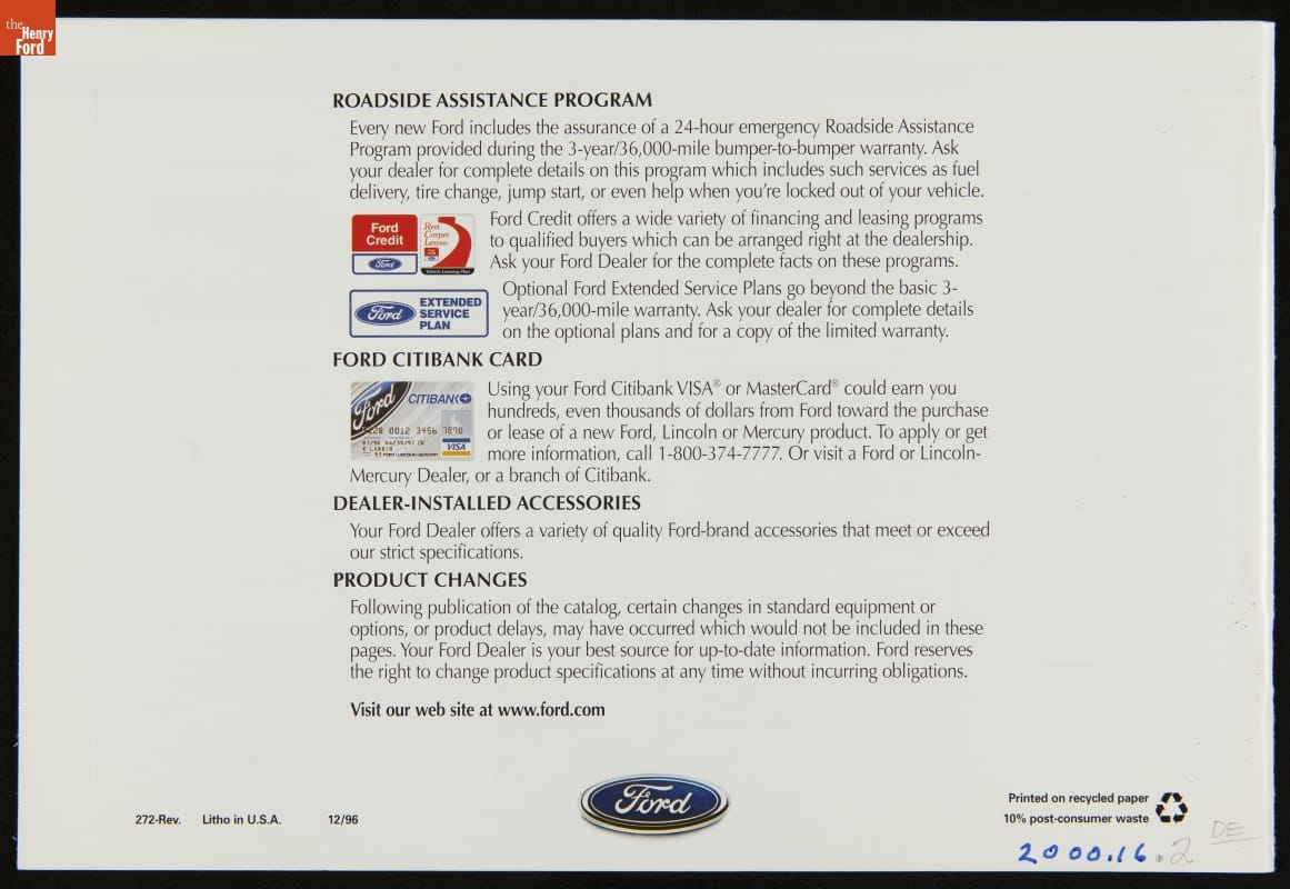 Sales Brochure, "Ford Cars and Trucks," 1997