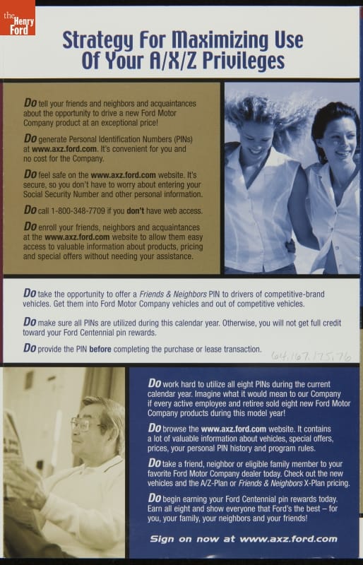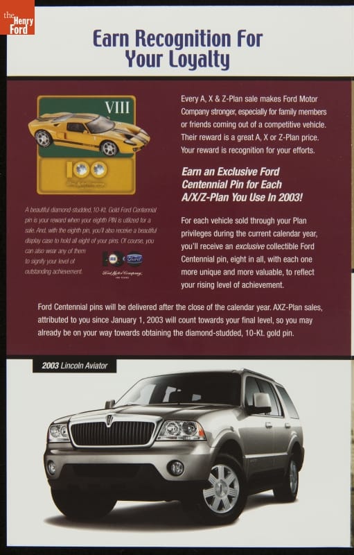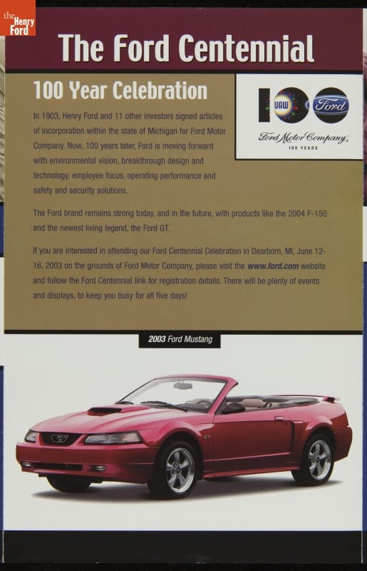 Sales Brochure for 2003 Ford Mustang, "A/X/Z-Plan Centennial Sales Celebration, 100 Years"