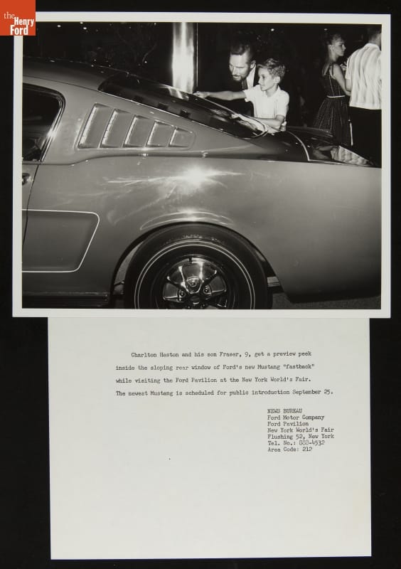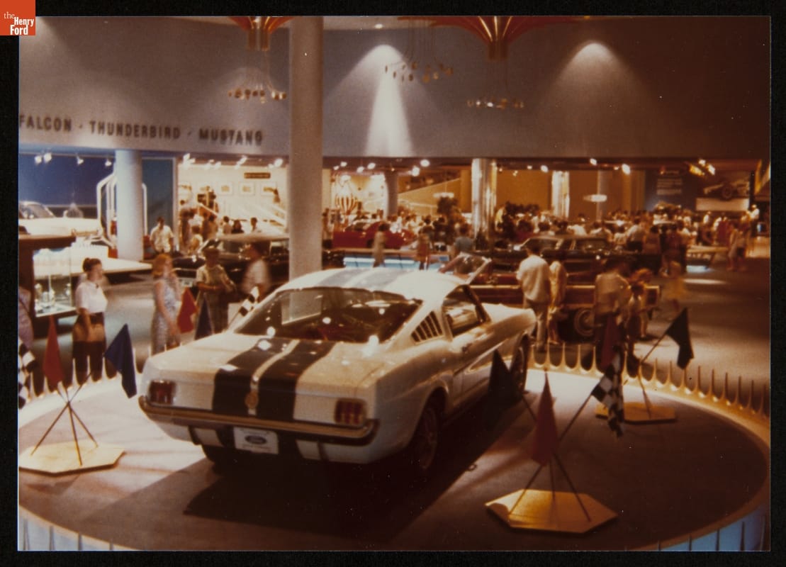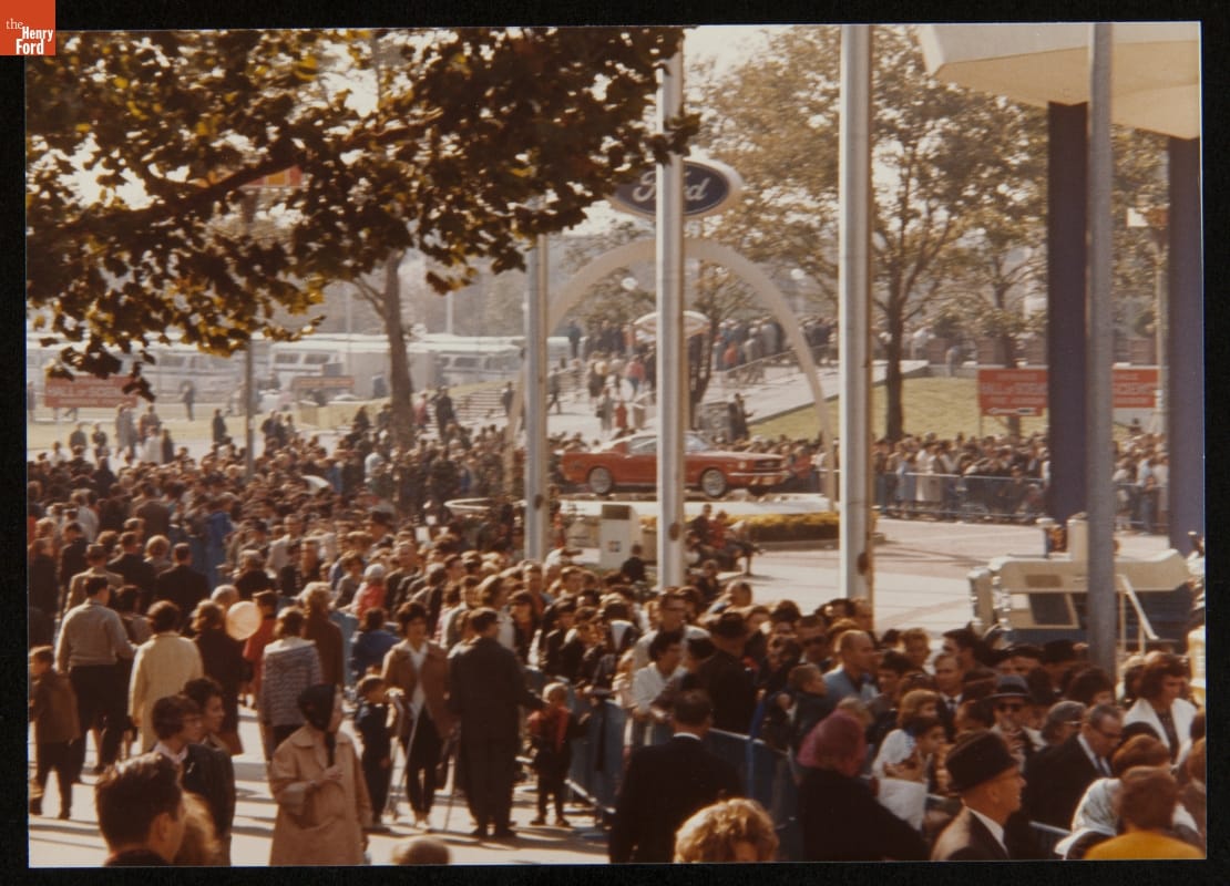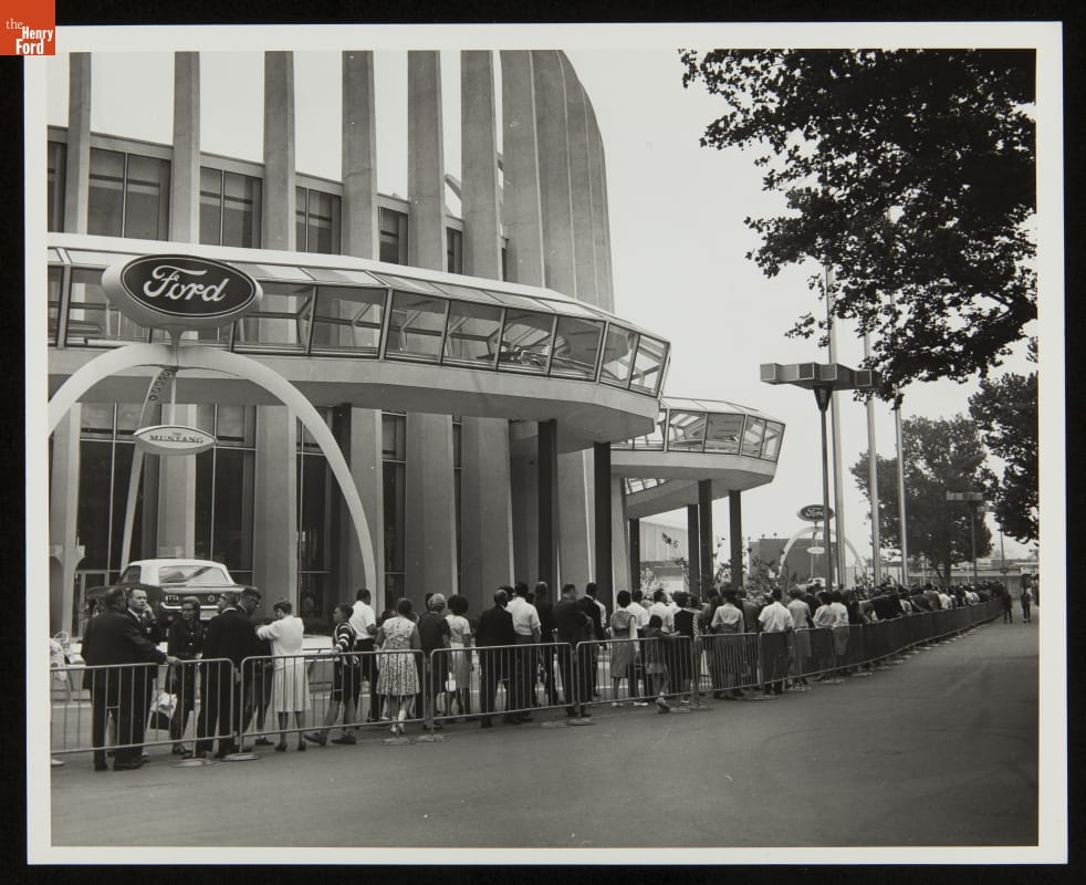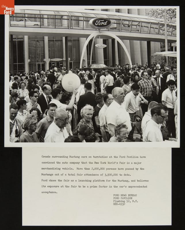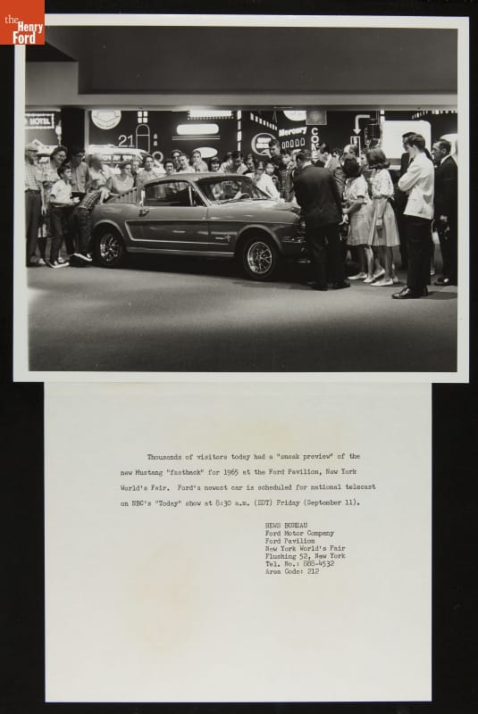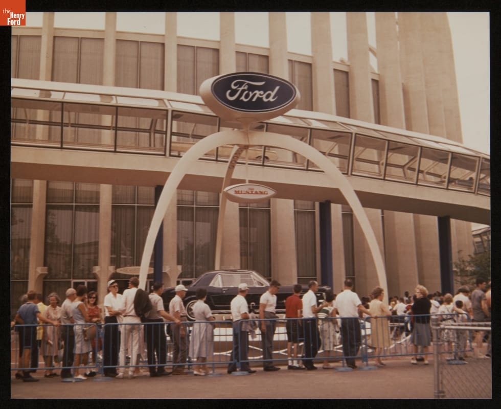 Ford Motor Company unveiled the 1965 Mustang on April 17, 1964, at the New York World's Fair. The exciting new car was a highlight of the Ford Pavilion, where the automaker displayed its latest models. Martin Luther King, Jr., Walt Disney and Charlton Heston were among the millions of visitors who streamed through the pavilion before the fair closed in 1965.