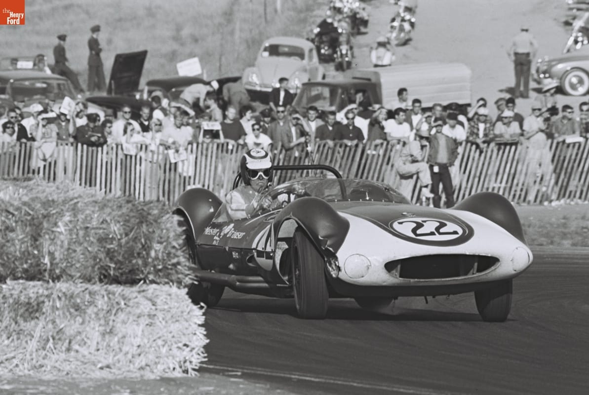 Dave Friedman has captured and preserved auto racing history through his photography. His work -- and his collection of works by other photographers -- documents key races, vehicles, drivers, and teams. This photograph was taken at the 1962 Pacific Grand Prix held at the Laguna Seca Raceway in Monterey, California. Roger Penske, who later enjoyed even greater success as a race team owner, drove to victory.