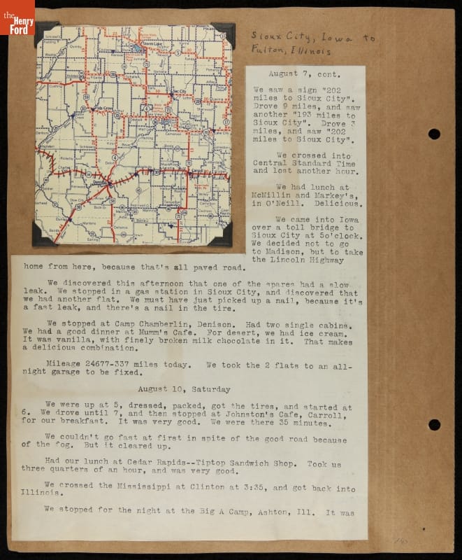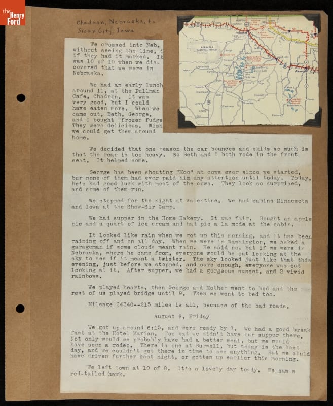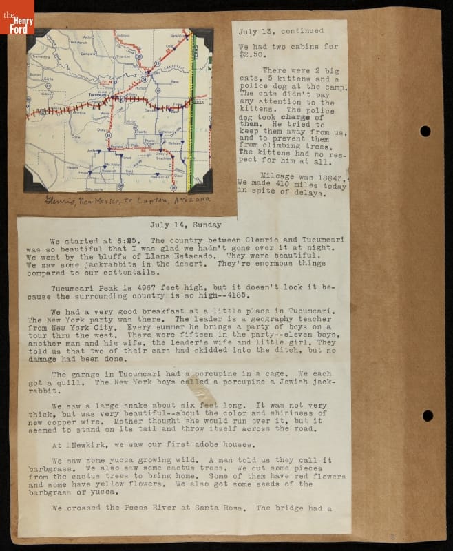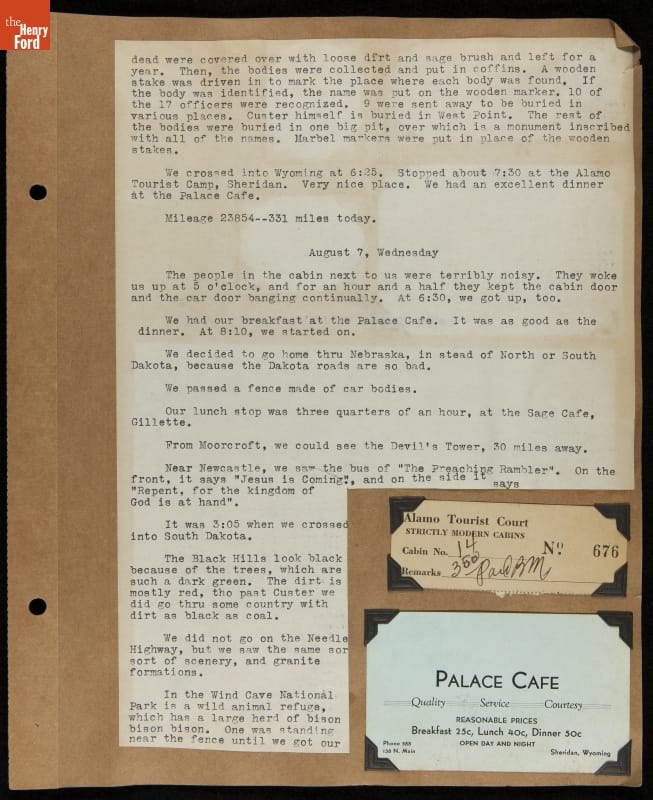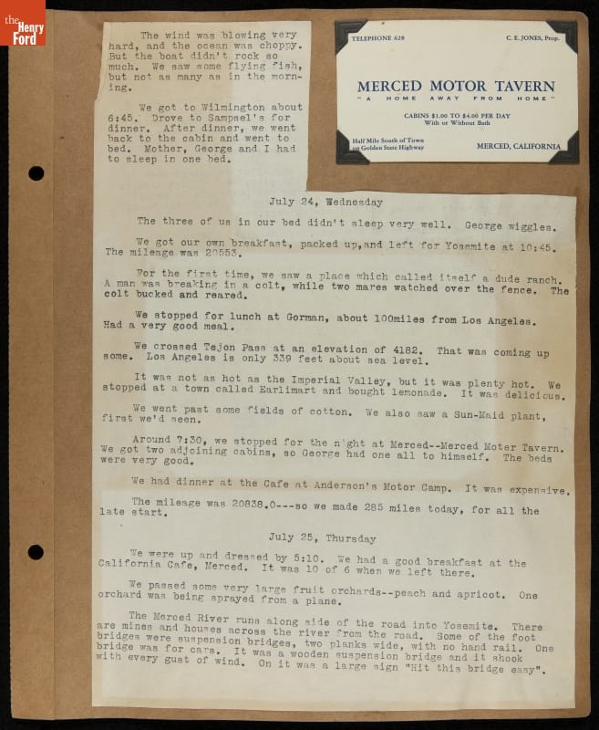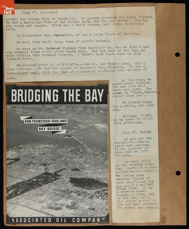 THF240767 / Travel Log of a Coast-to-Coast Automobile Round-Trip, July 9-August 13, 1935 / page 53, with insert