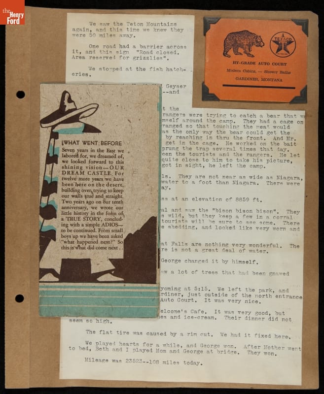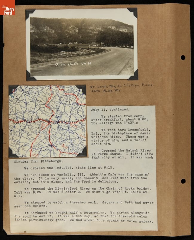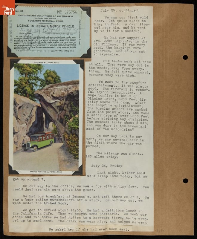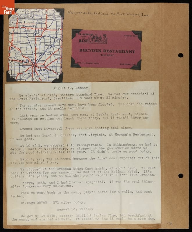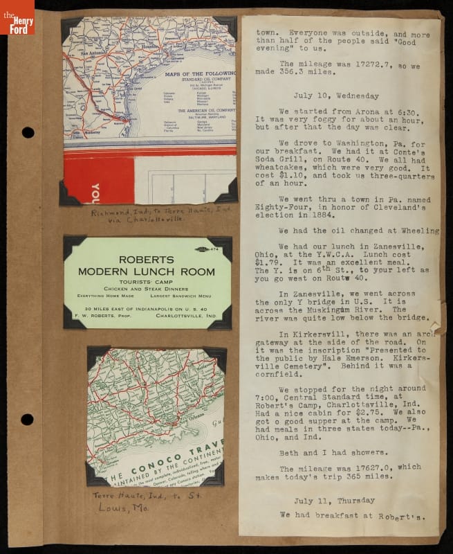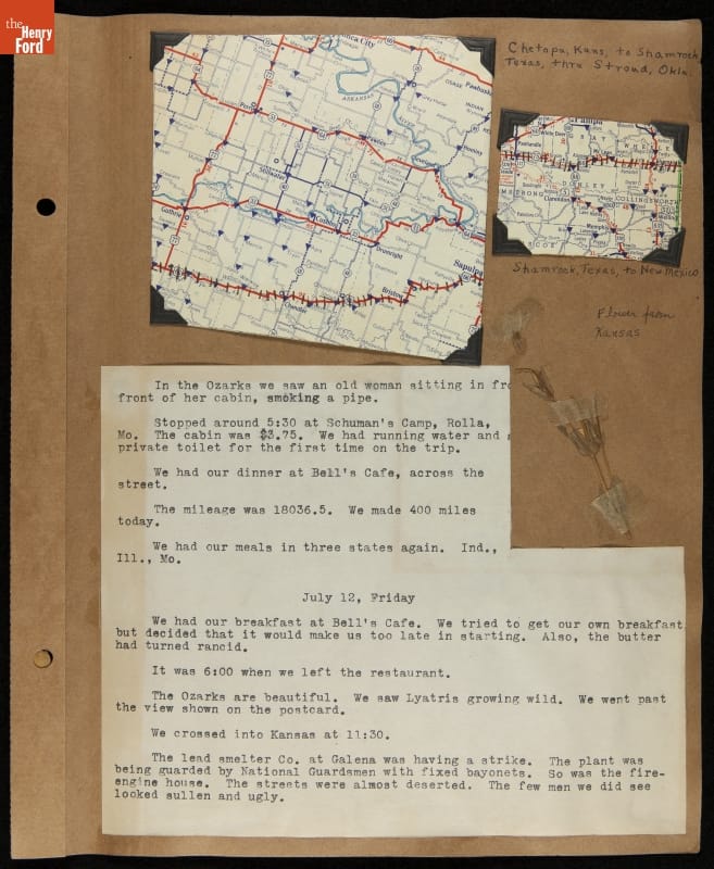 THF240767 / Travel Log of a Coast-to-Coast Automobile Round-Trip, July 9-August 13, 1935 / page 53, with insert